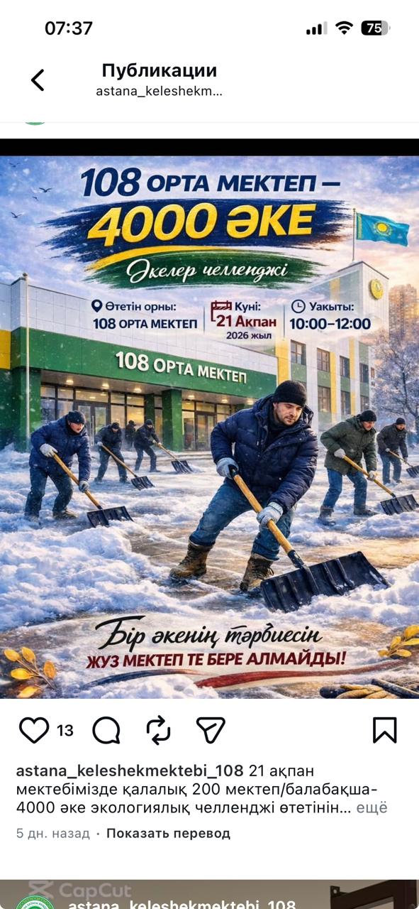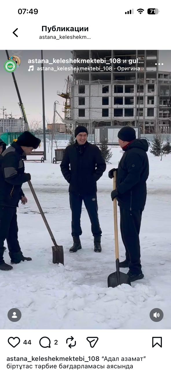 «Адал азамат» біртұтас тәрбие бағдарламасы аясында «Жасампаздық және жаңашылдық» айында 2026 жылдың 21 ақпан күні мектебімізде отбасы мен мектеп арасындағы ынтымақтастықты нығайтуға бағытталған республикалық челлендж өтті. Әкелеріміз мектеп ауласын тазалау және көркейту жұмыстарына атсалысып, өскелең ұрпаққа еңбексүйгіштік пен жауапкершіліктің жарқын үлгісін көрсетті.