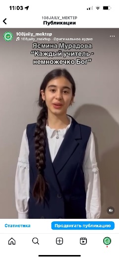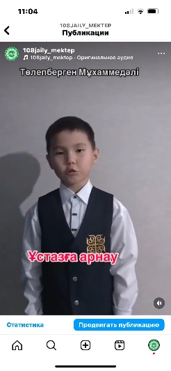 Аға тәлімгердің жылдық жоспары негізінде Ұстаздар күніне арналған «Ғалым да, дана да бас иетін» тақырыбында бейне құттықтау акциясы өтті. Келіп жеткен бейне баяндар инстаграм парақшасында жарық көрді.